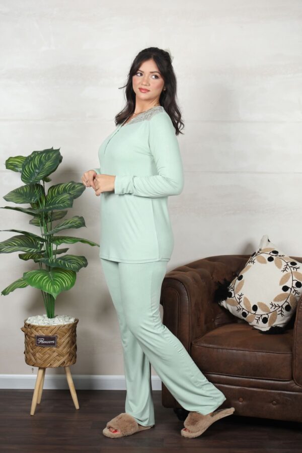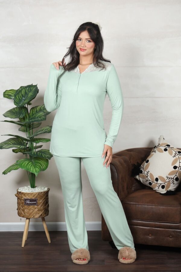 PYJAMA FEMME PULL 2 BOUTON AV DENTELLE PISTACHE