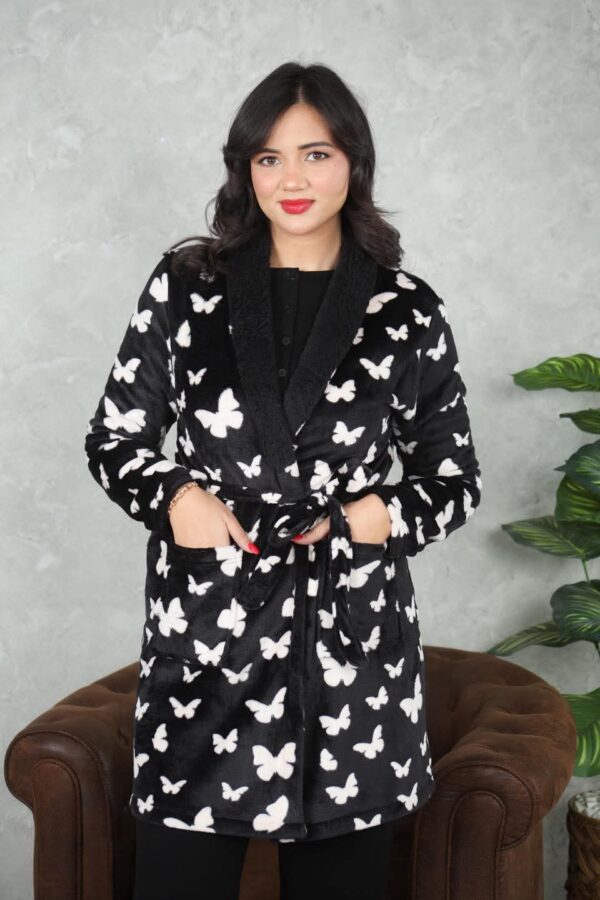 Enveloppez vos soirées d’une touche de poésie avec ce pyjama noir orné de délicats papillons blancs. Confectionné dans une matière peluche ultra-douce, il offre un confort enveloppant idéal pour les moments de détente à la maison. Sa coupe kimono, ceinturée à la taille, sublime la silhouette tout en assurant une liberté de mouvement parfaite.