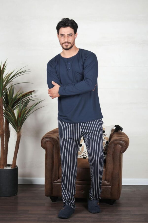 PYJAMA HOMME PULL MANCHES LONGUES MARINE PANT IMPRIME RAYE د.ت 60,0
