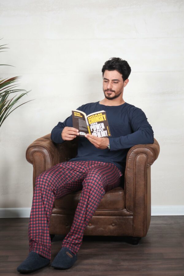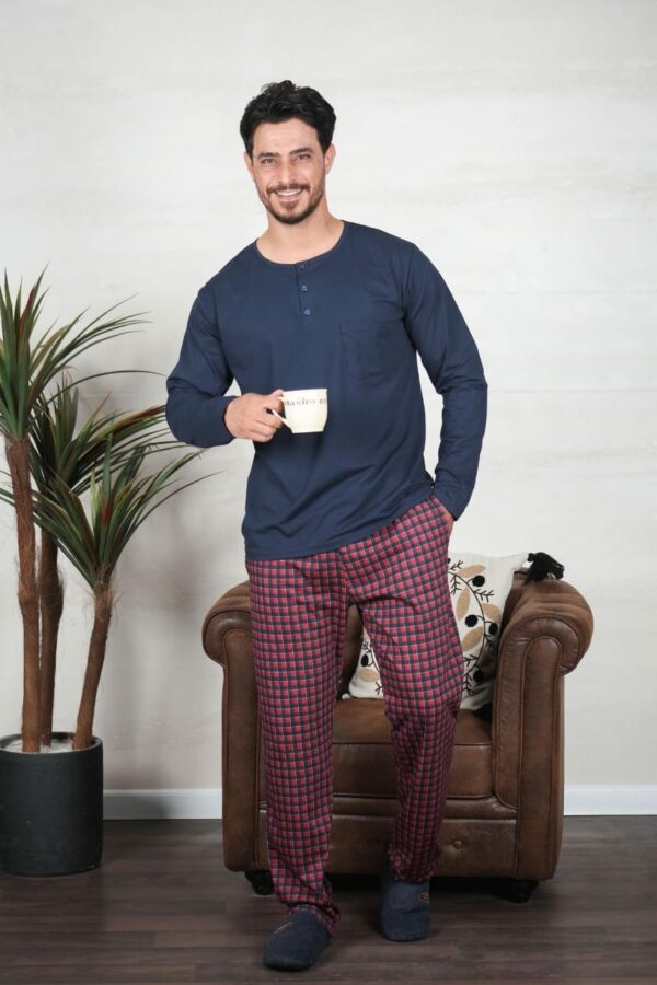 PYJAMA HOMME PULL ML MARINE PANT IMP CARREAUX ROUGE د.ت 60,0