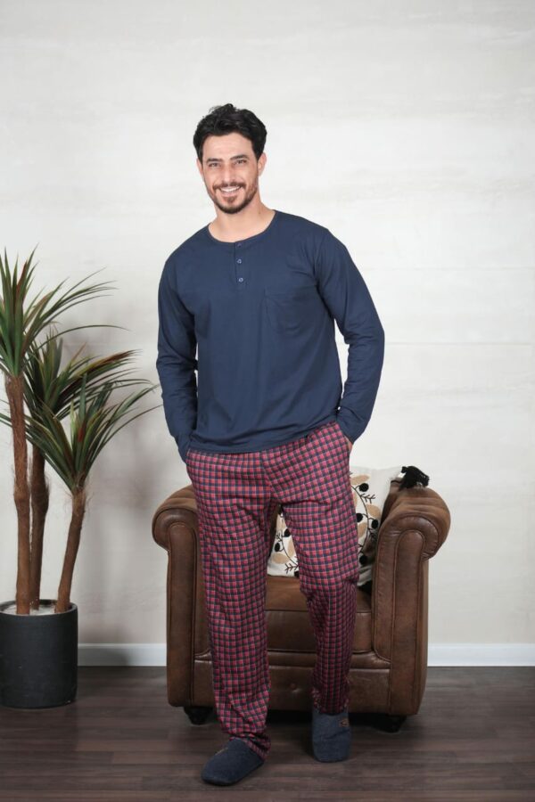 • PYJAMA HOMME PULL ML MARINE PANT IMP CARREAUX ROUGE
