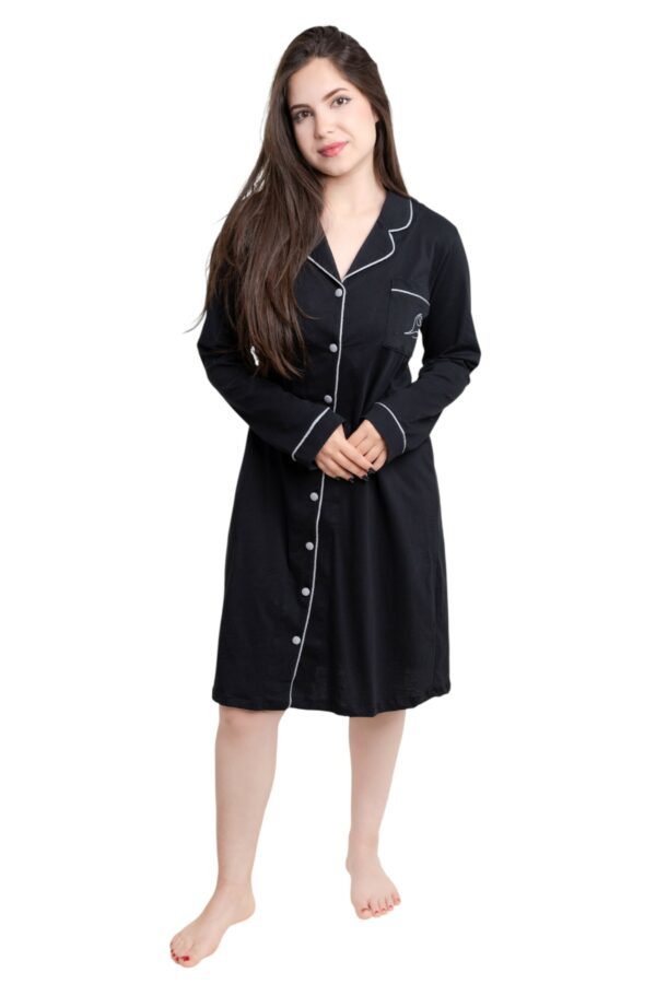 Robe Boutonnée Noire à Finitions Contrastées – Élégance Décontractée