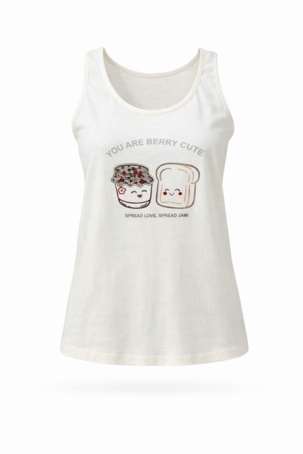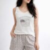 Un pyjama plein de fraîcheur et d’humour, parfait pour vos soirées cocooning. Le haut sans manches blanc arbore un imprimé joyeux .
